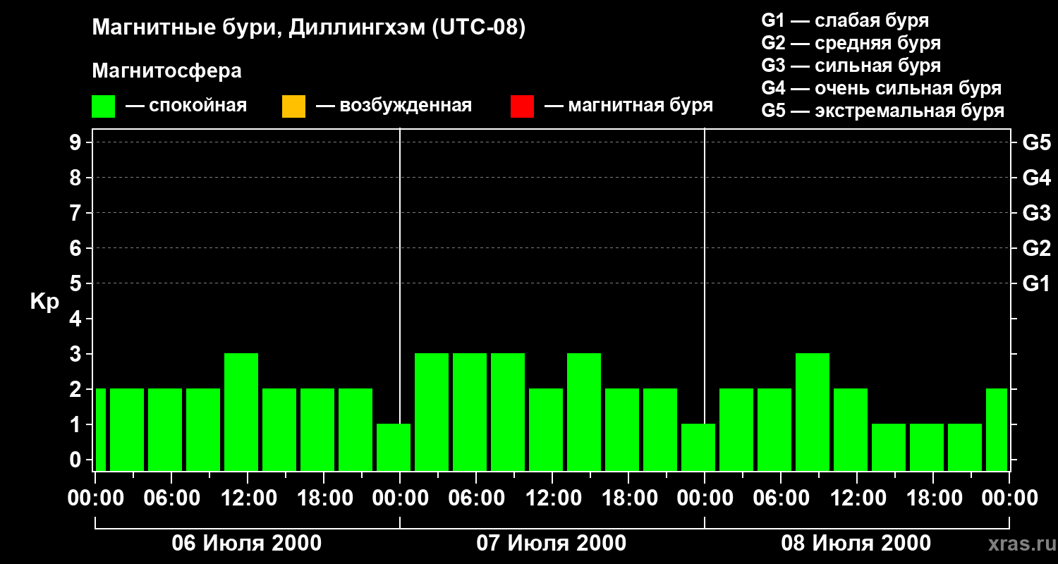 Магнитные бури в Диллингхэме — 8 июля 2000 года