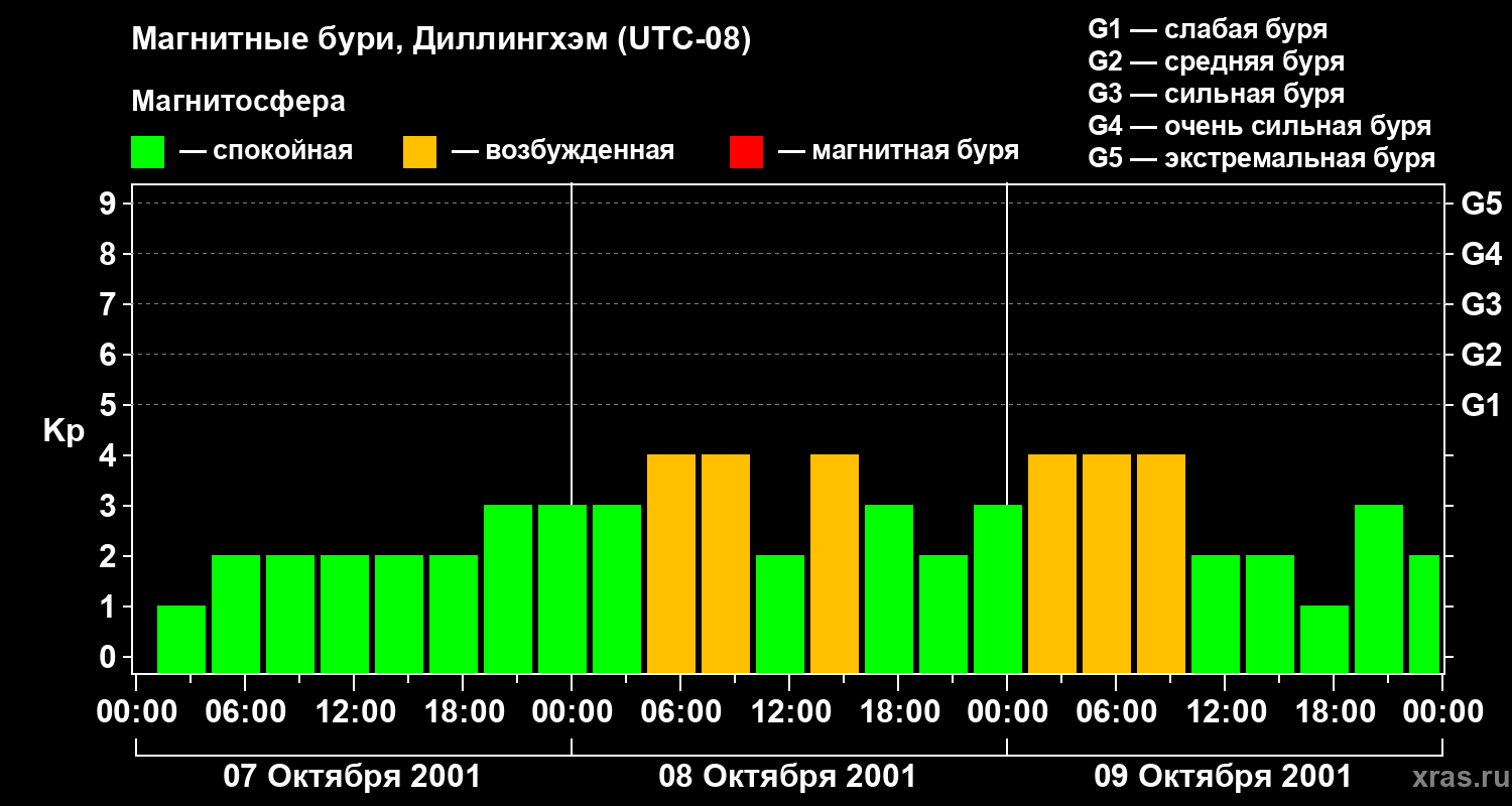 Магнитные бури в Диллингхэме — 9 октября 2001 года