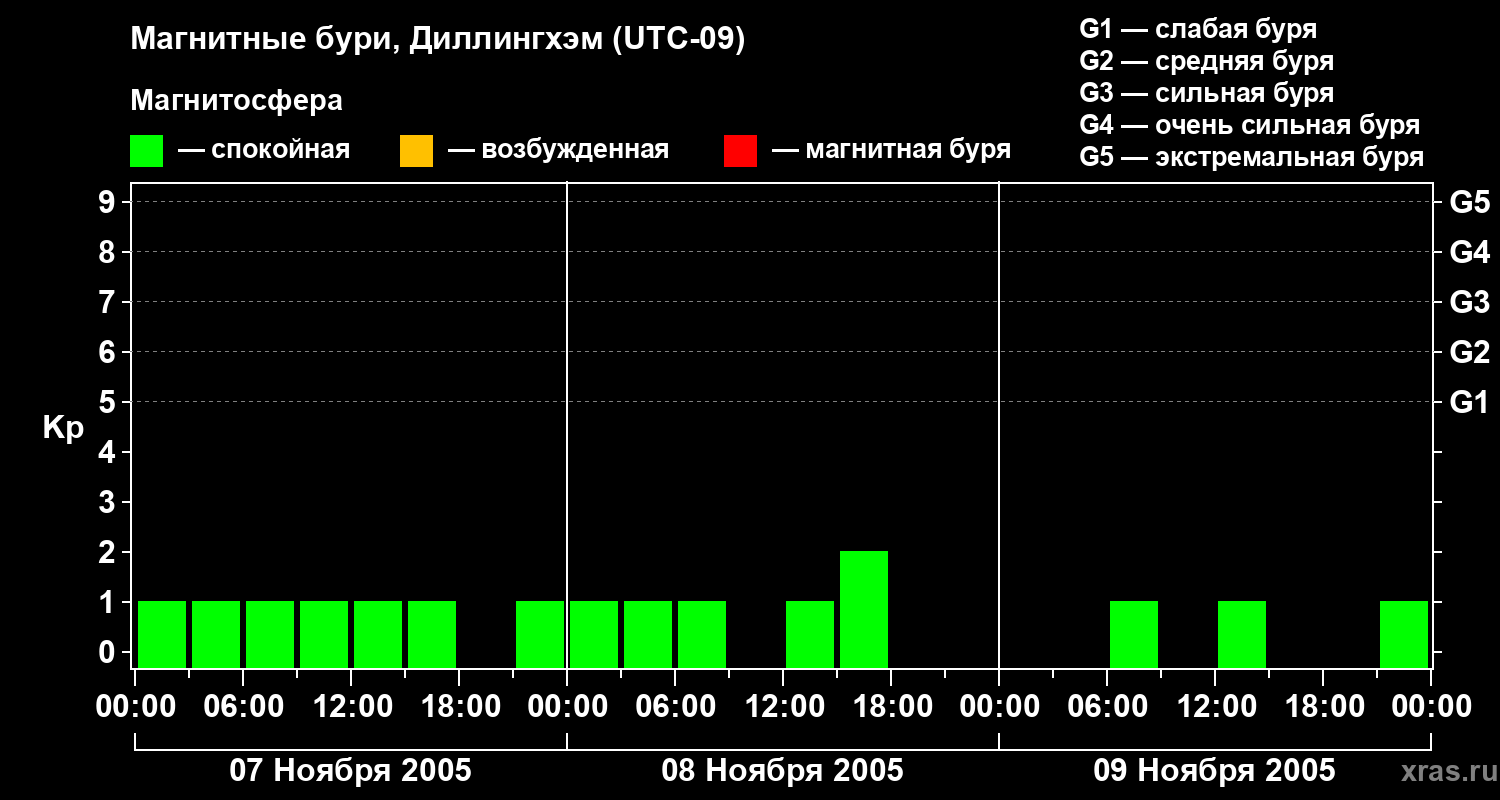 Магнитные бури в Диллингхэме 9 ноября 2005 года