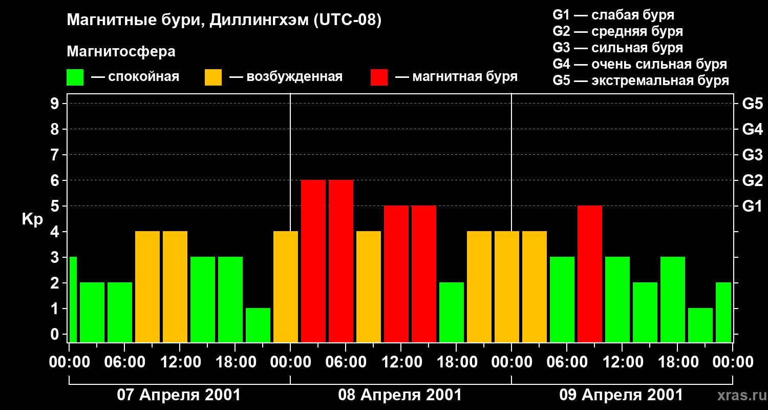 Магнитные бури в Диллингхэме — 9 апреля 2001 года