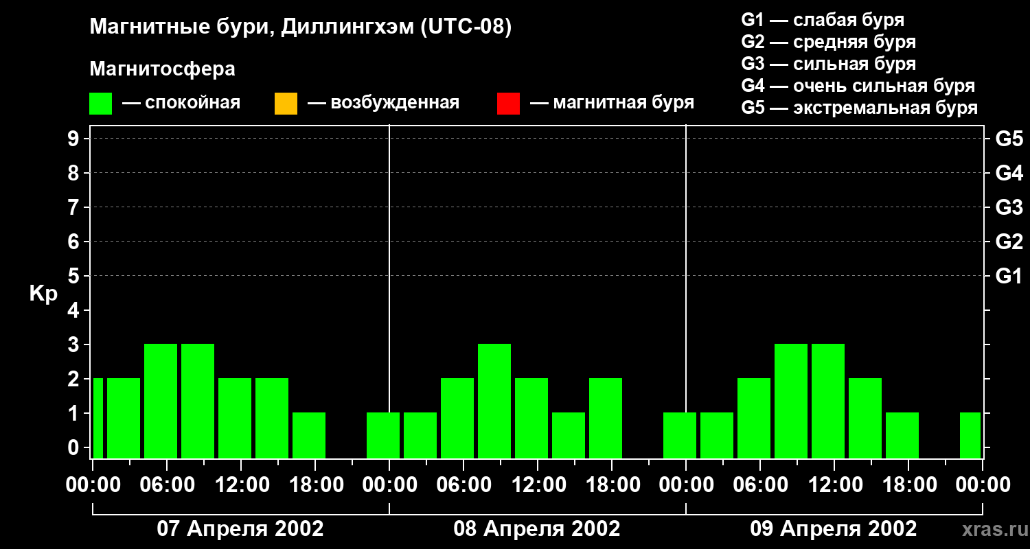Магнитные бури в Диллингхэме 9 апреля 2002 года