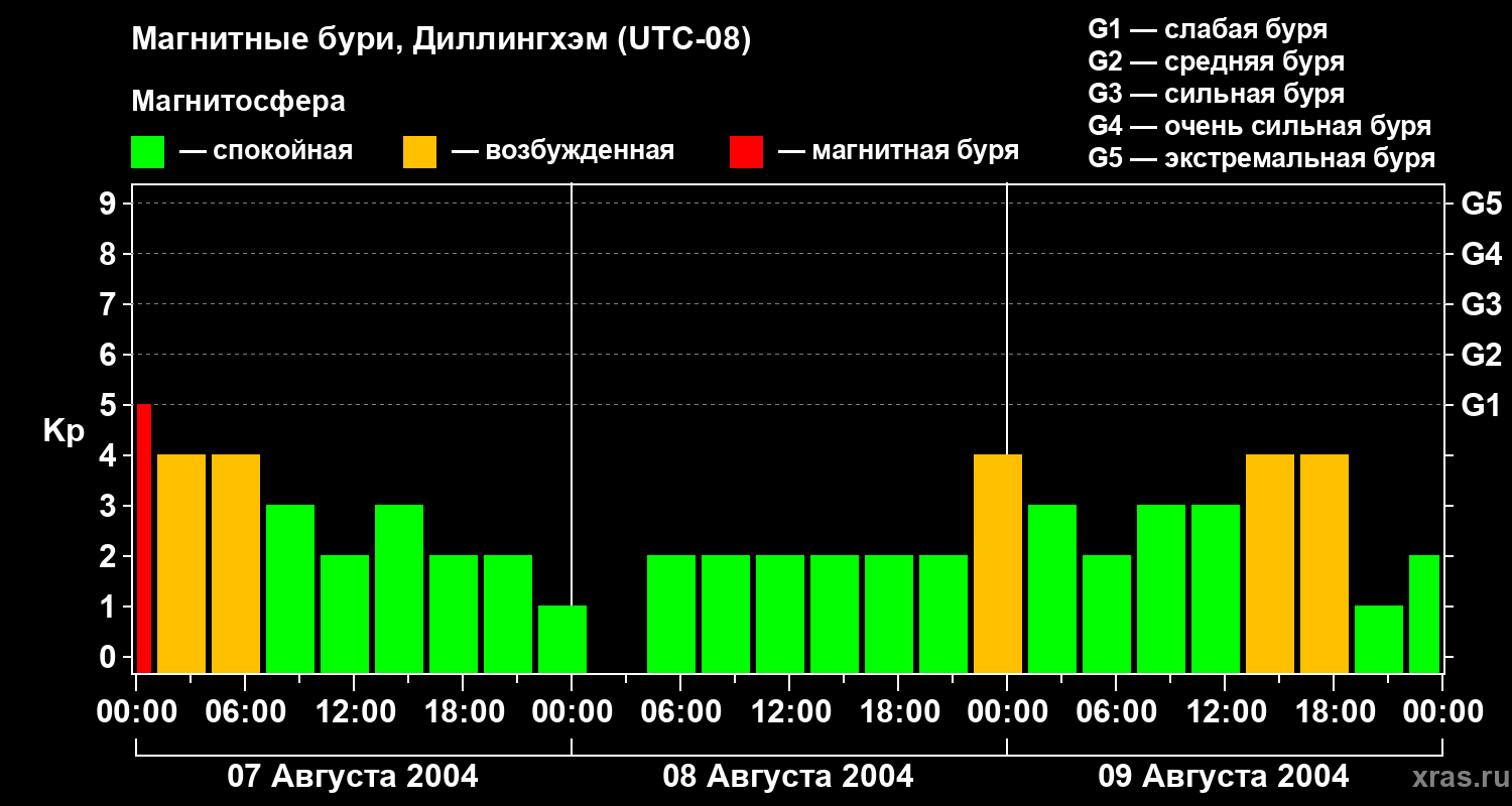 Магнитные бури в Диллингхэме 9 августа 2004 года
