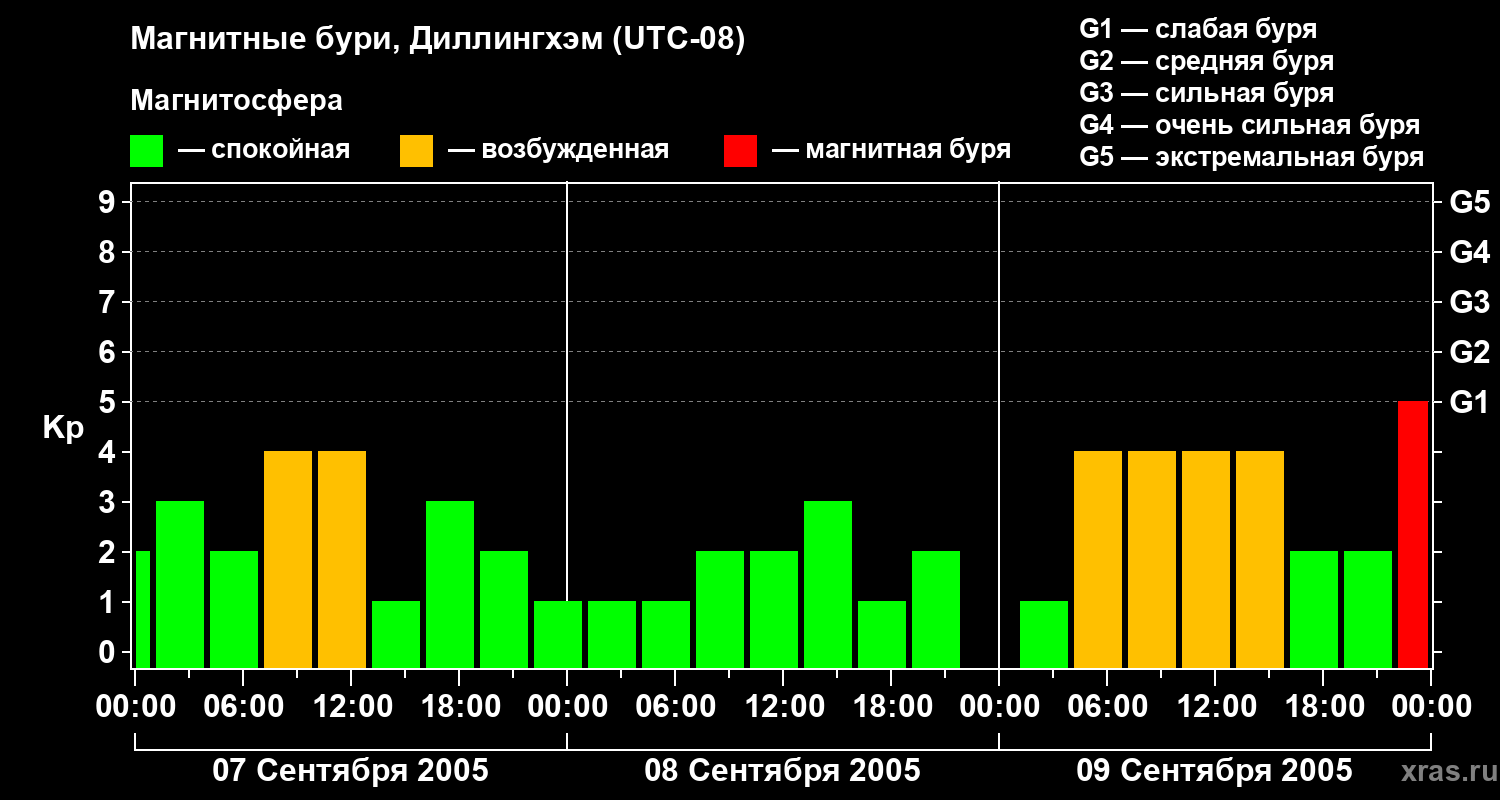 Магнитные бури в Диллингхэме — 9 сентября 2005 года