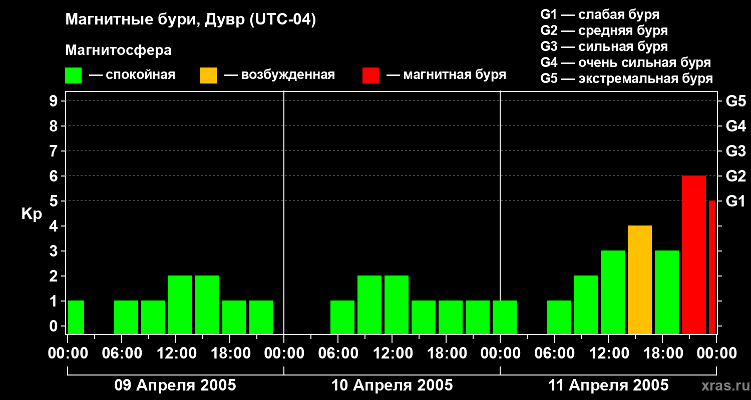 Магнитные бури в Дувре — 11 апреля 2005 года