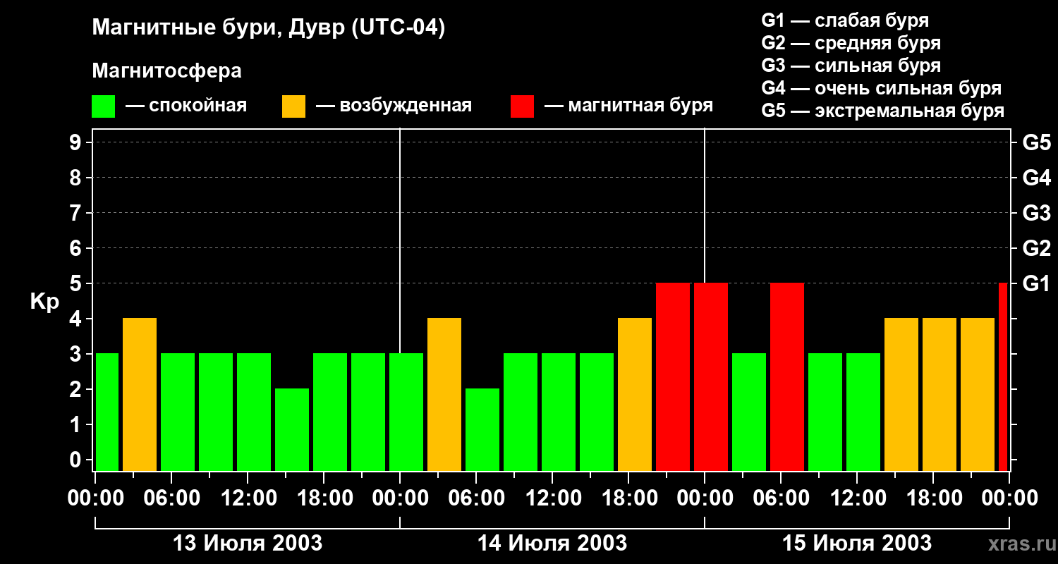 Магнитные бури в Дувре 15 июля 2003 года