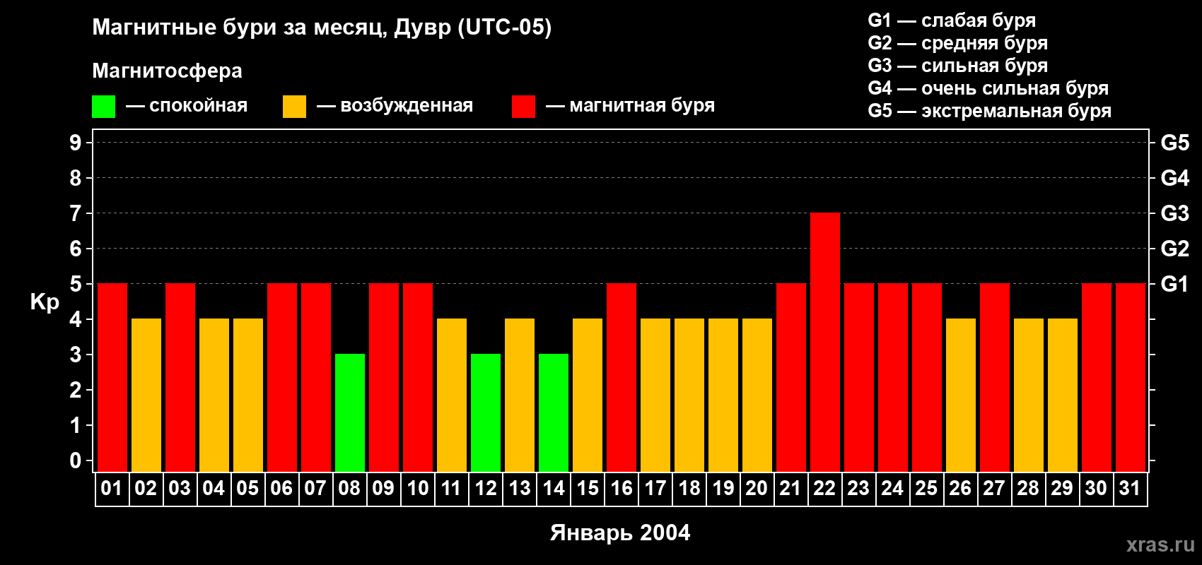 Список магнитных бурь в январе 2004 года