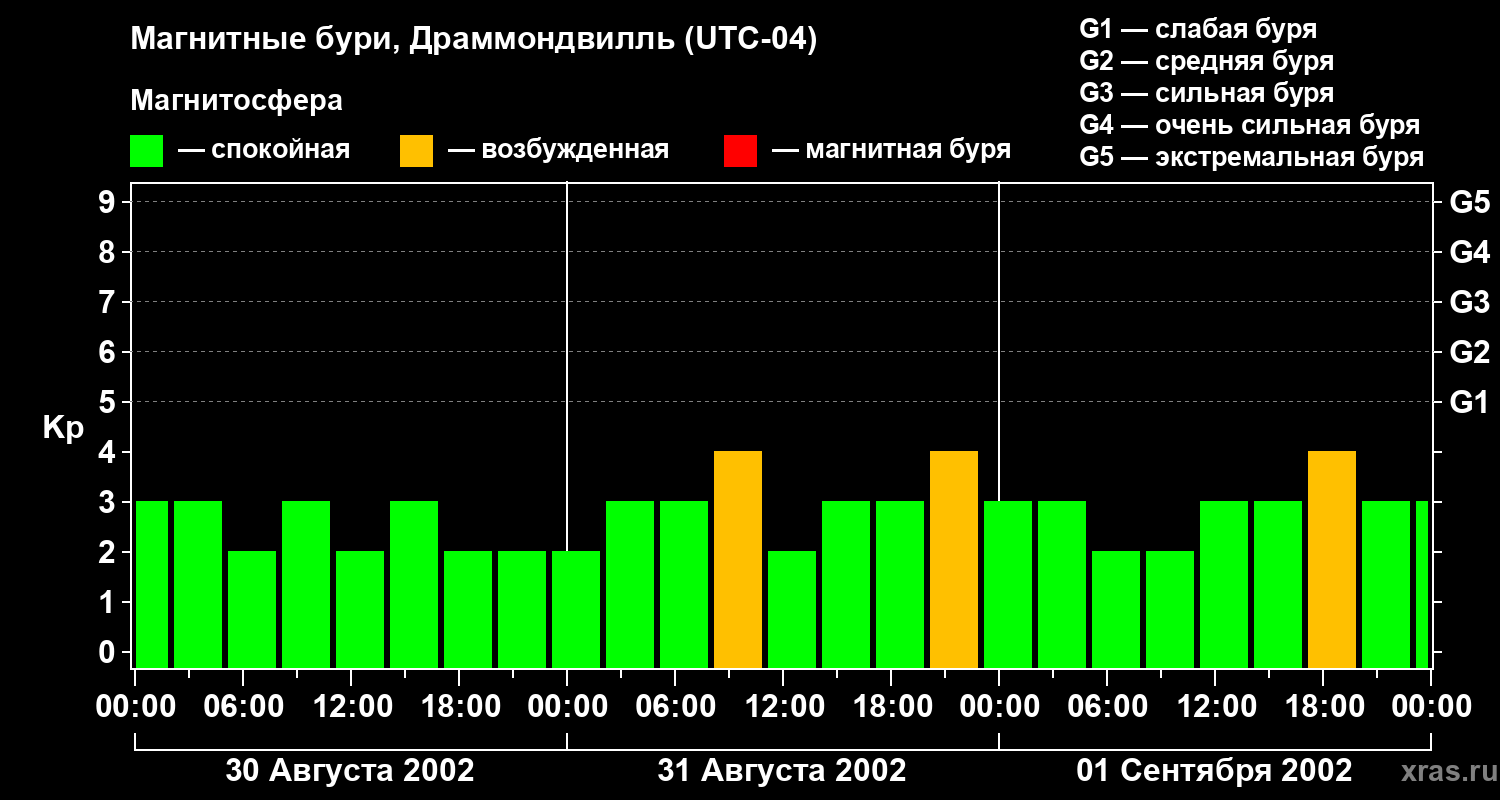 Магнитные бури в Драммондвилле 1 сентября 2002 года