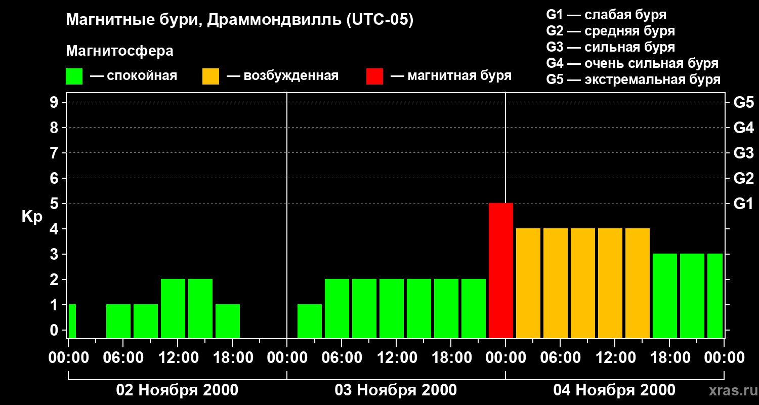 Магнитные бури в Драммондвилле 4 ноября 2000 года