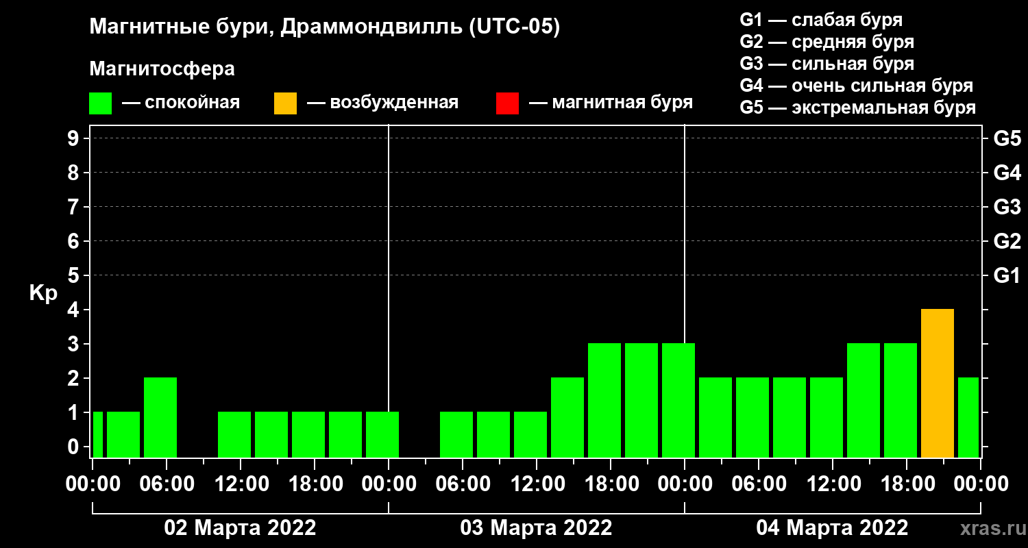Магнитные бури в Драммондвилле 4 марта 2022 года
