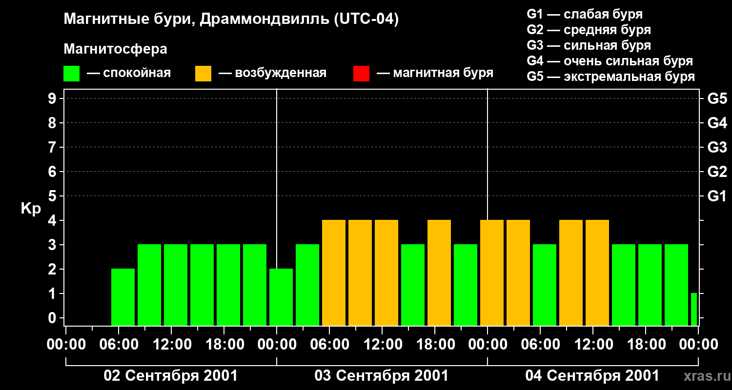 Магнитные бури в Драммондвилле 4 сентября 2001 года