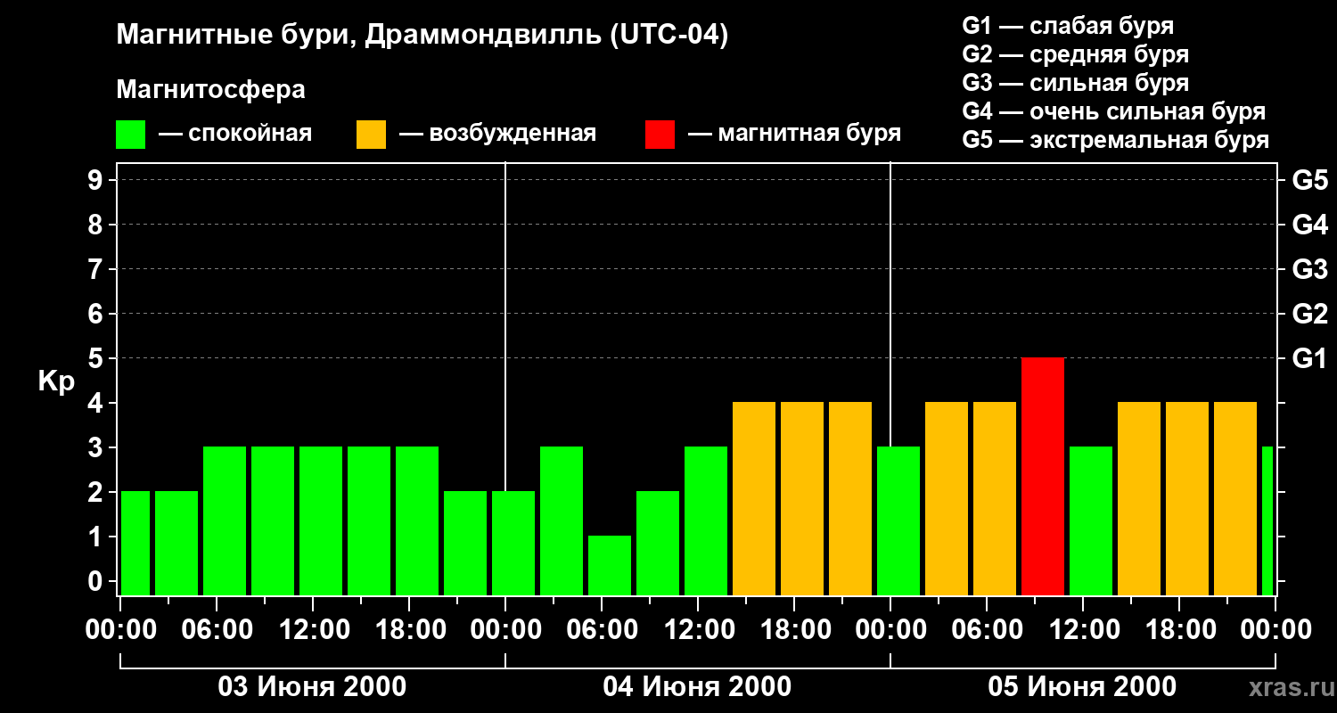 Магнитные бури в Драммондвилле 5 июня 2000 года
