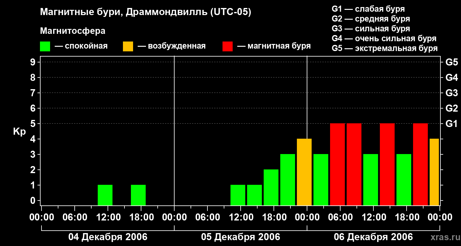 Магнитные бури в Драммондвилле 6 декабря 2006 года
