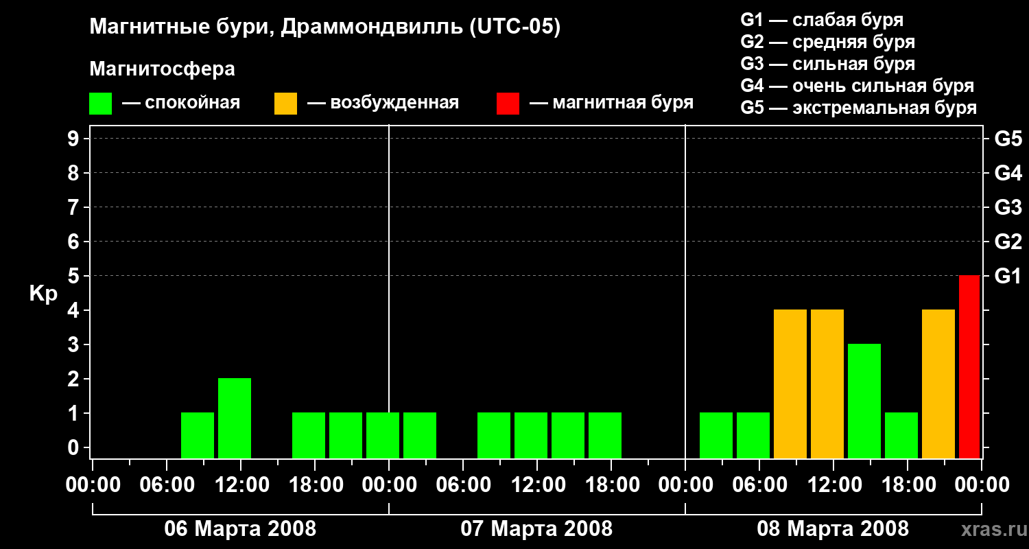 Магнитные бури в Драммондвилле — 8 марта 2008 года