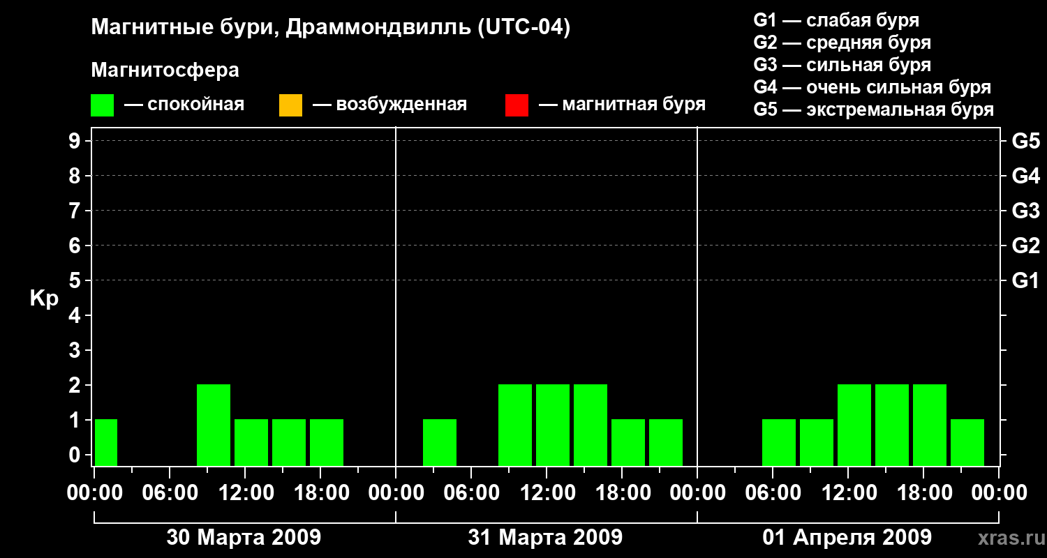 Магнитные бури в Драммондвилле 1 апреля 2009 года