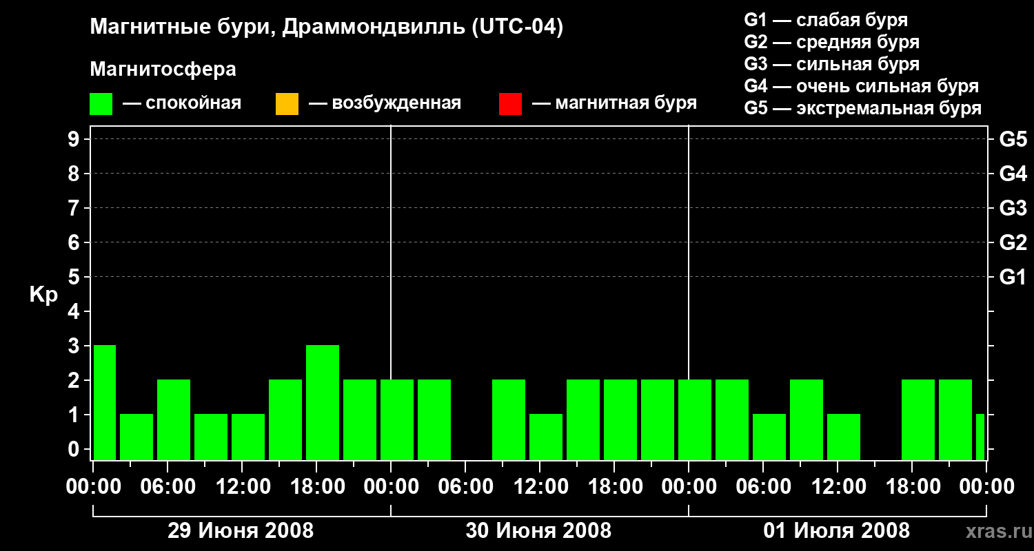 Магнитные бури в Драммондвилле 1 июля 2008 года