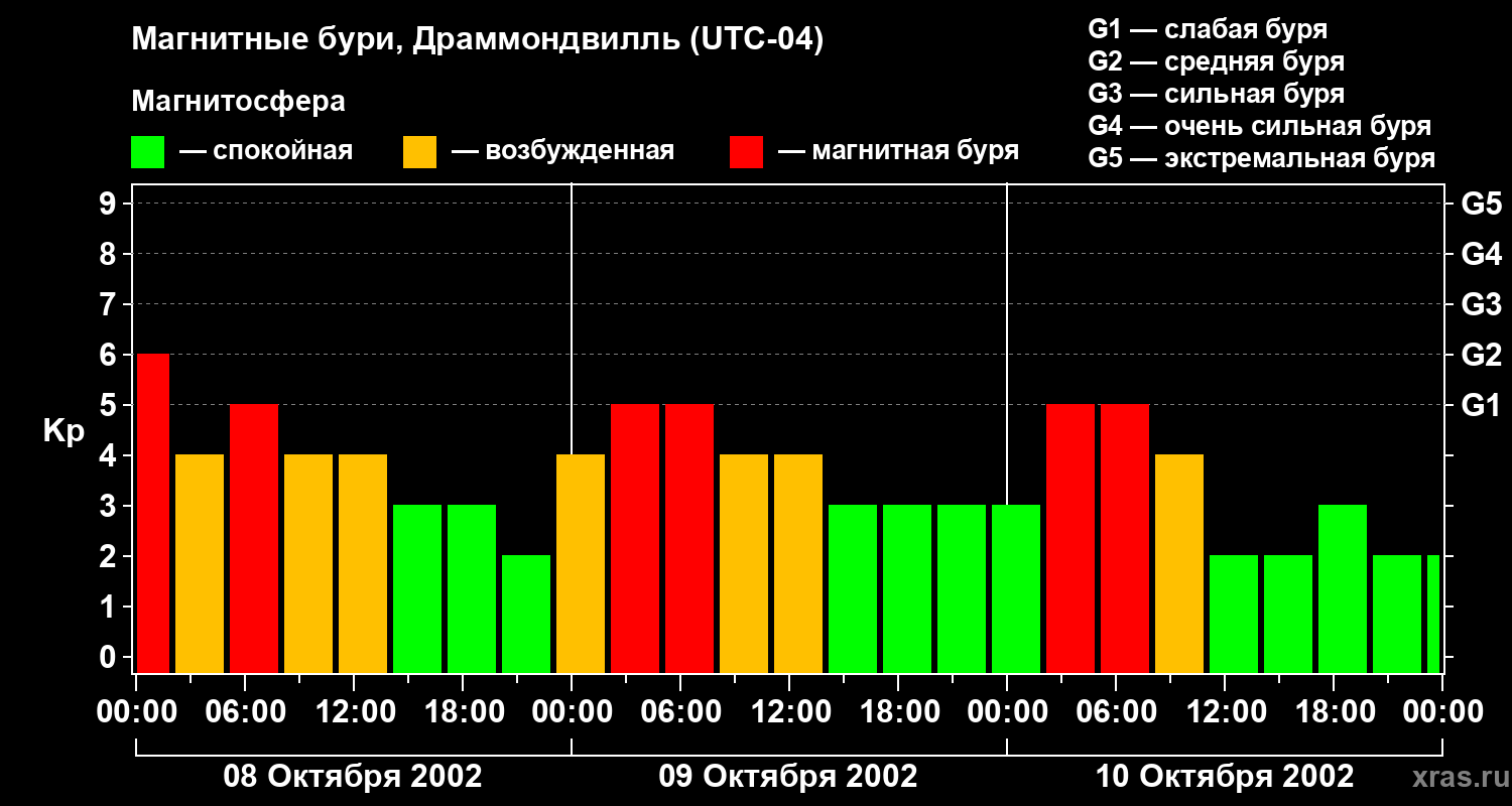 Магнитные бури в Драммондвилле 10 октября 2002 года