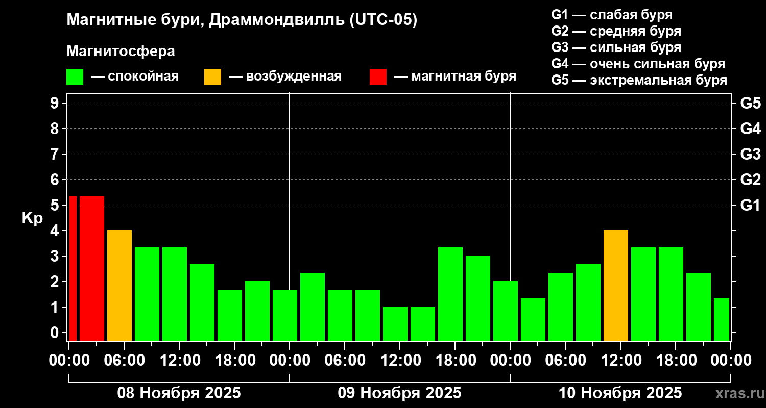 Магнитные бури в Драммондвилле 10 ноября 2025 года