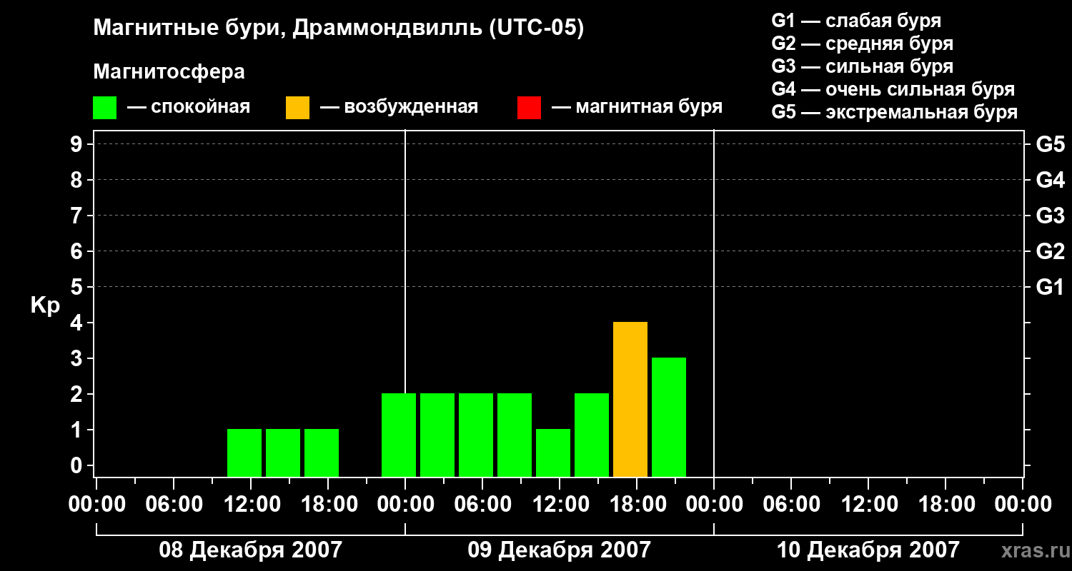 Магнитные бури в Драммондвилле в декабре 2007 года