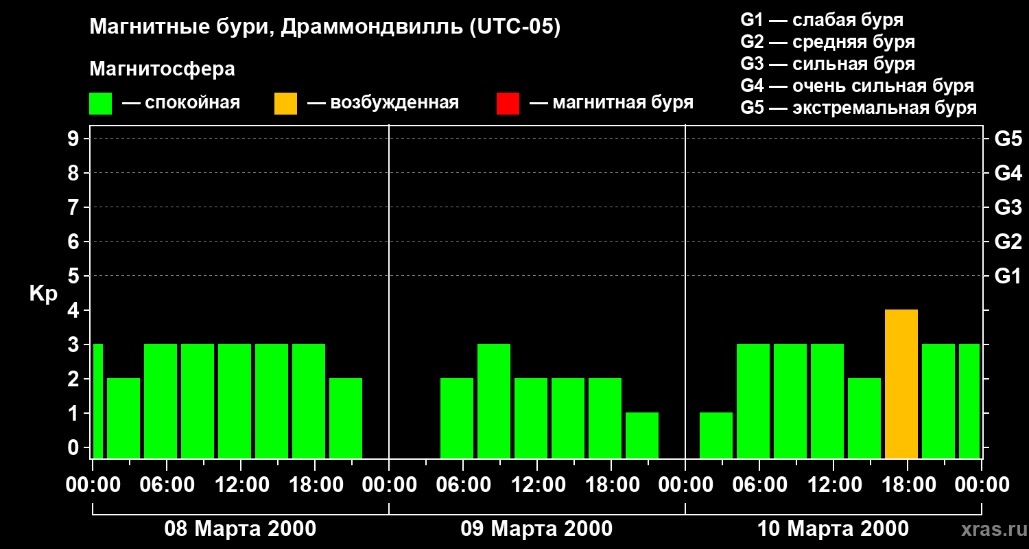 Магнитные бури в Драммондвилле 10 марта 2000 года
