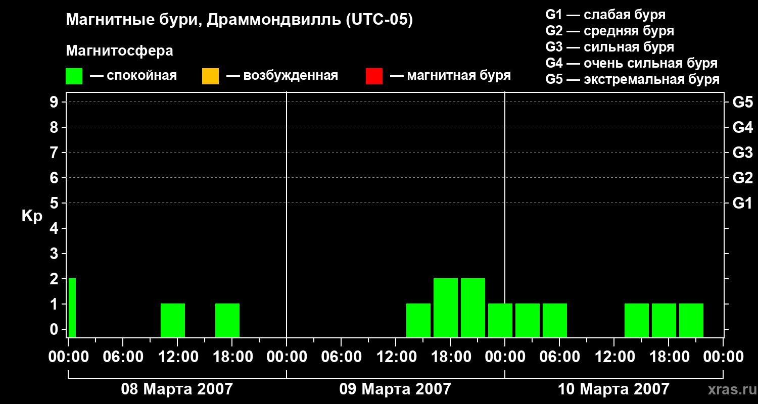 Магнитные бури в Драммондвилле — 10 марта 2007 года