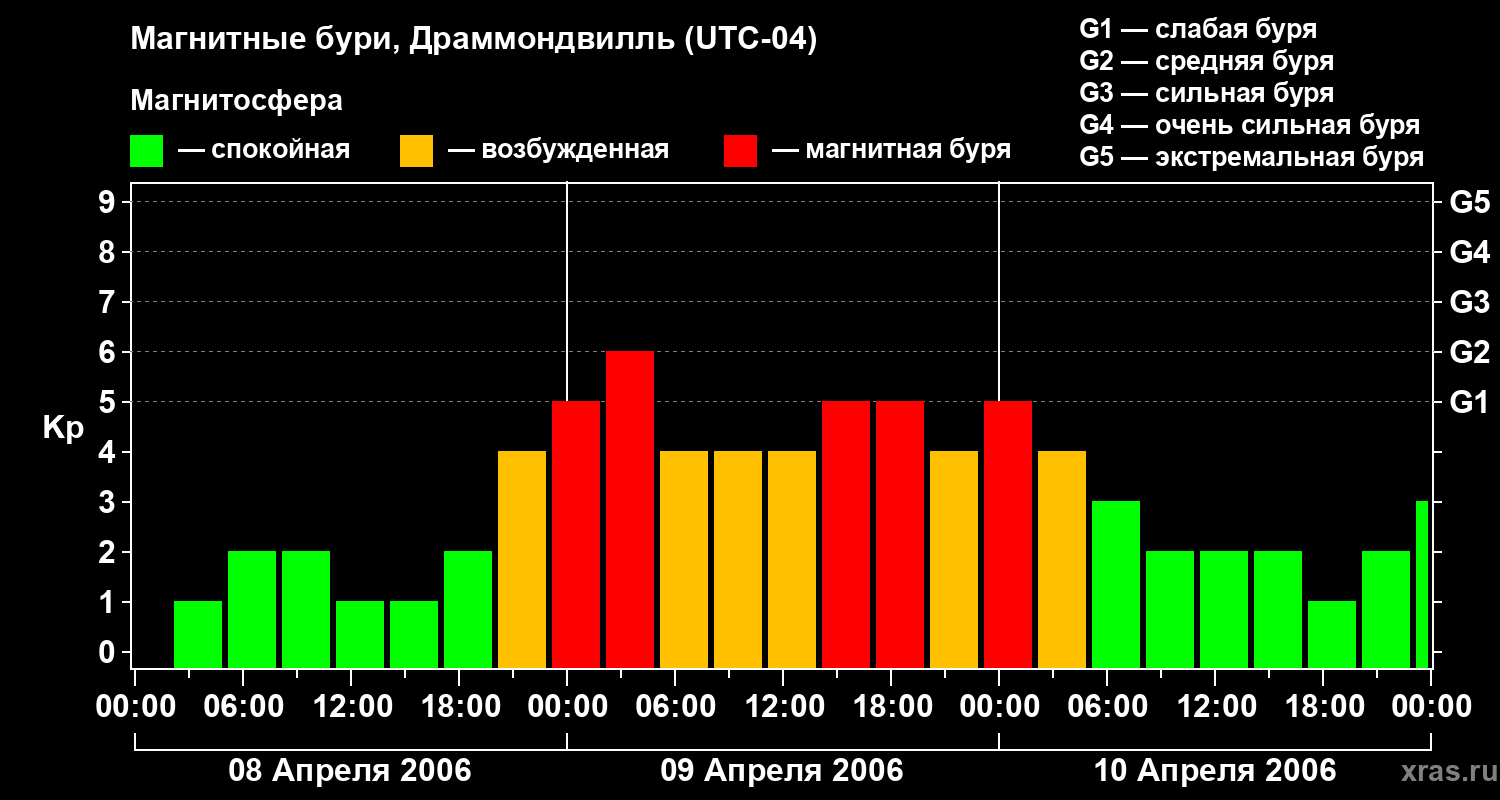 Магнитные бури в Драммондвилле 10 апреля 2006 года