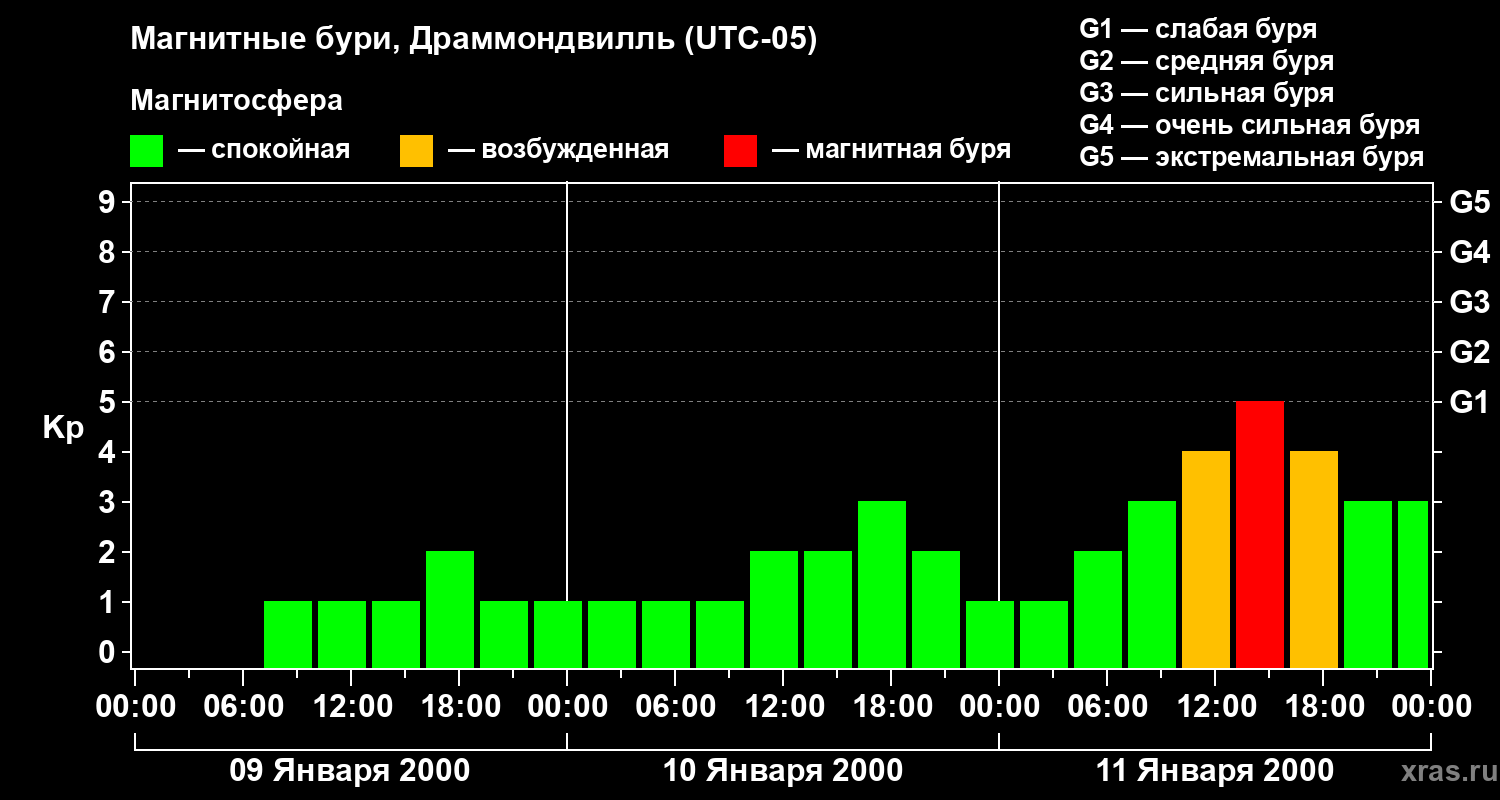Магнитные бури в Драммондвилле 11 января 2000 года