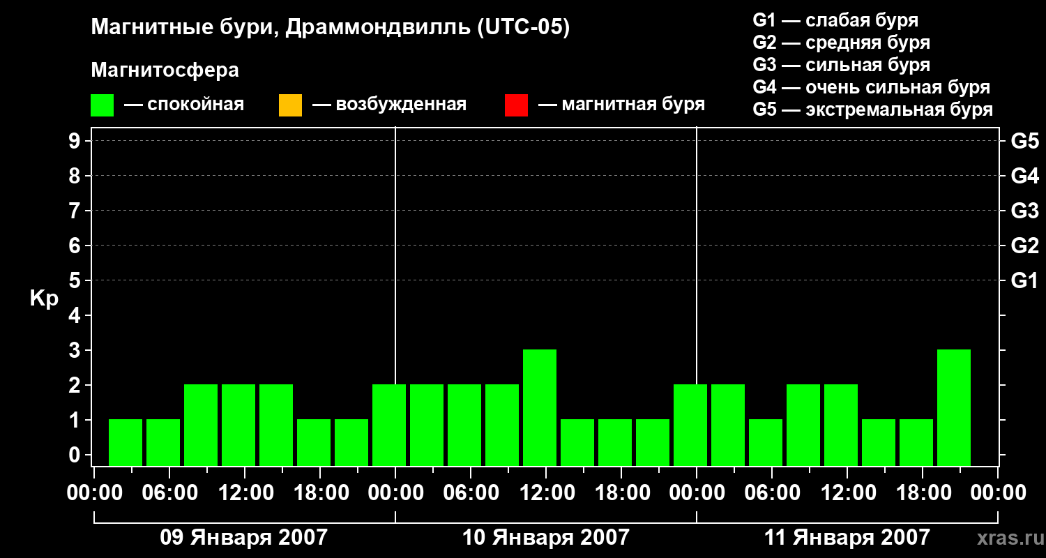 Магнитные бури в Драммондвилле 11 января 2007 года