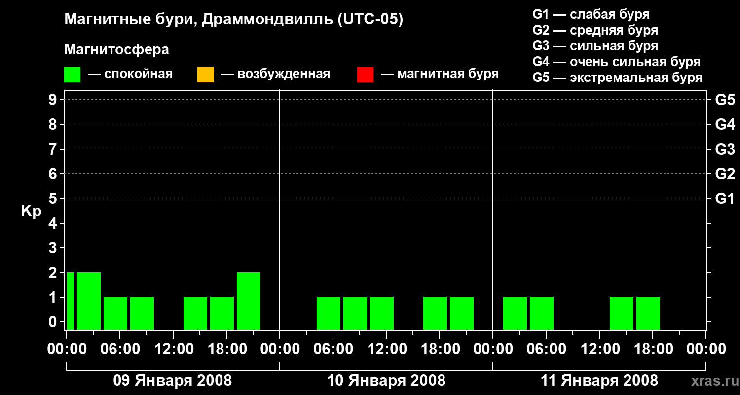 Магнитные бури в Драммондвилле 11 января 2008 года