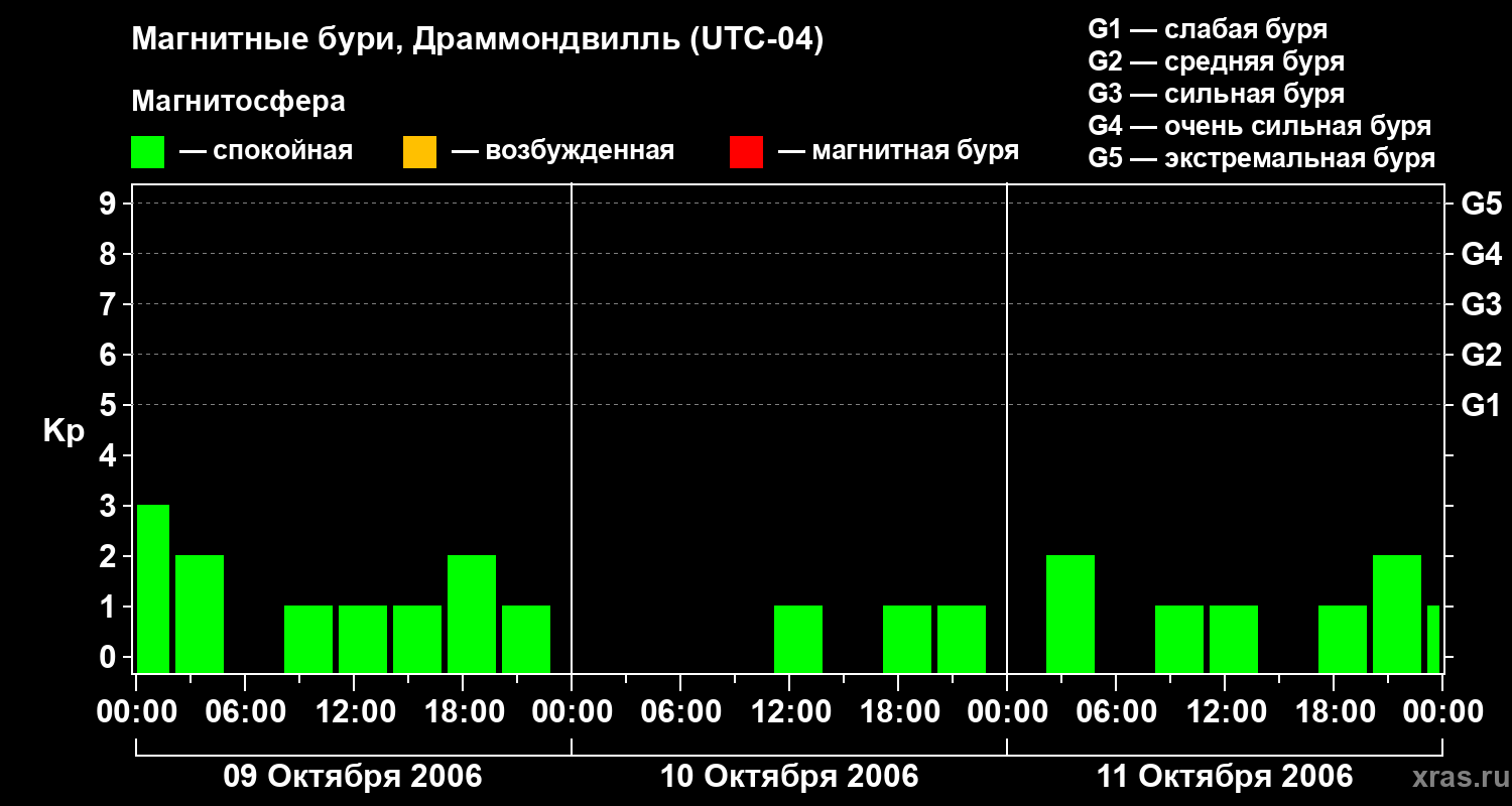 Магнитные бури в Драммондвилле 11 октября 2006 года