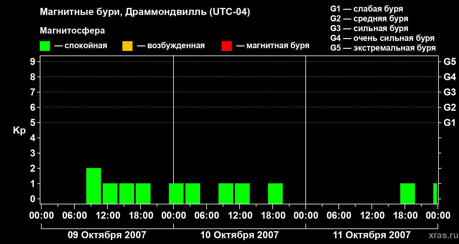 Магнитные бури в Драммондвилле 11 октября 2007 года