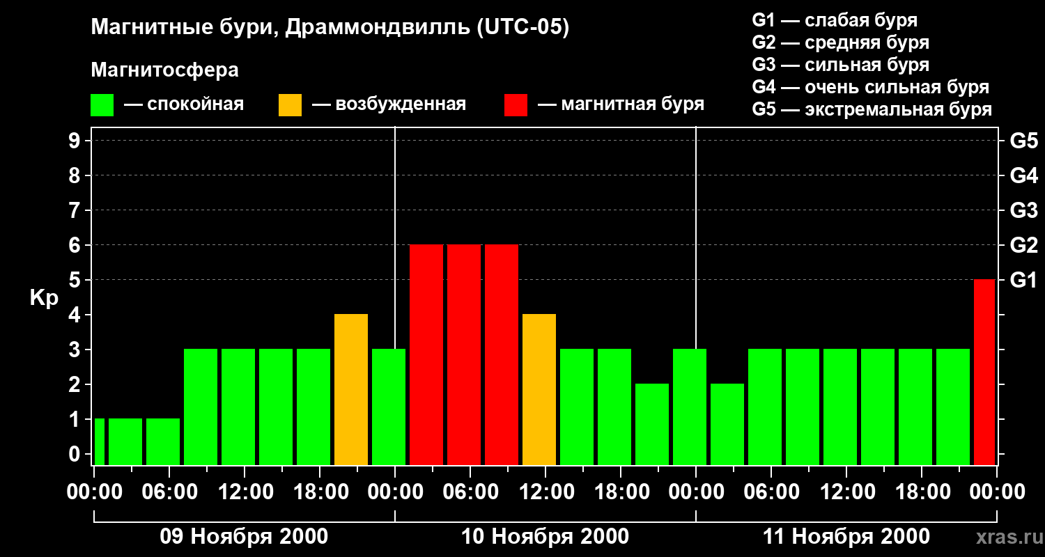 Магнитные бури в Драммондвилле 11 ноября 2000 года