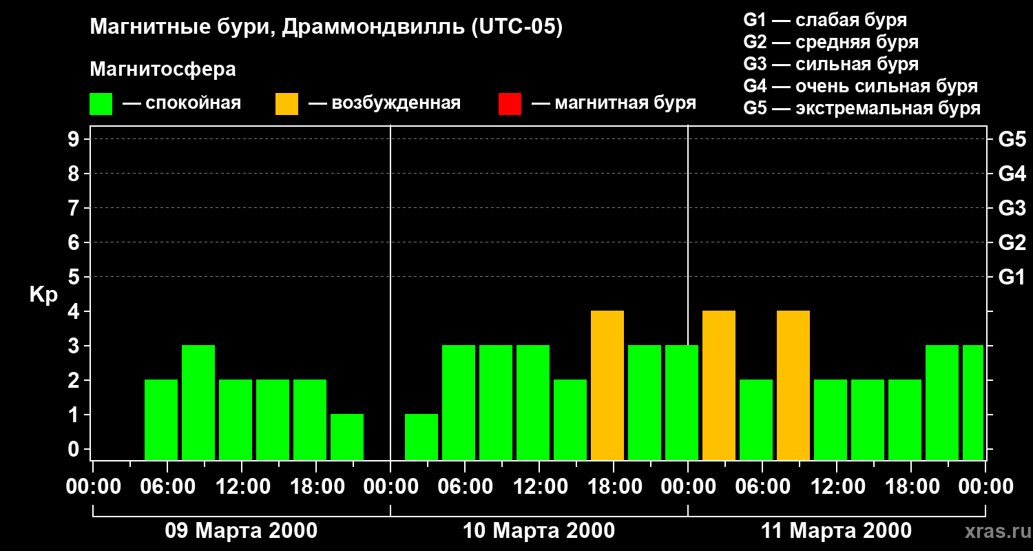 Магнитные бури в Драммондвилле 11 марта 2000 года