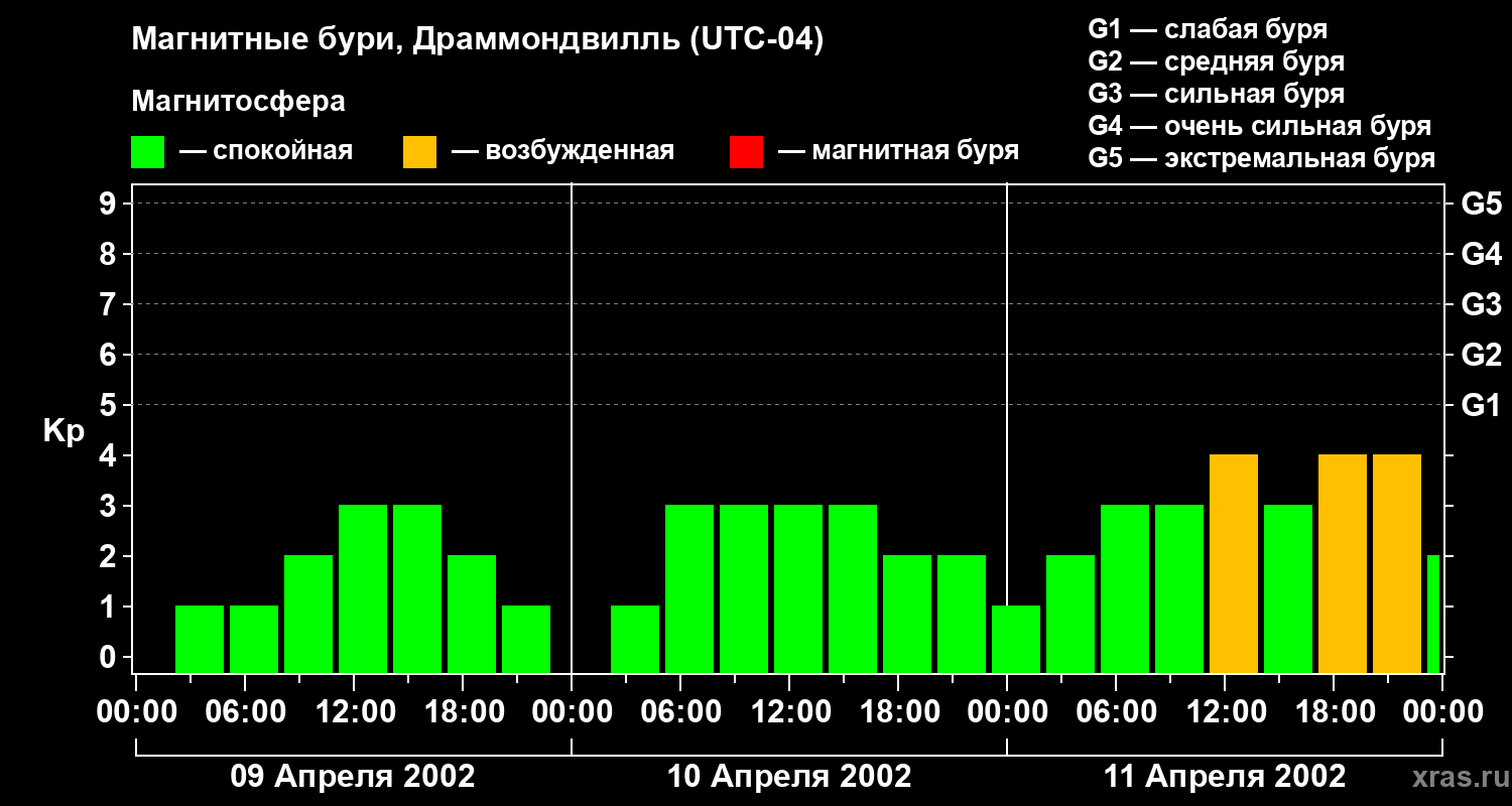 Магнитные бури в Драммондвилле 11 апреля 2002 года