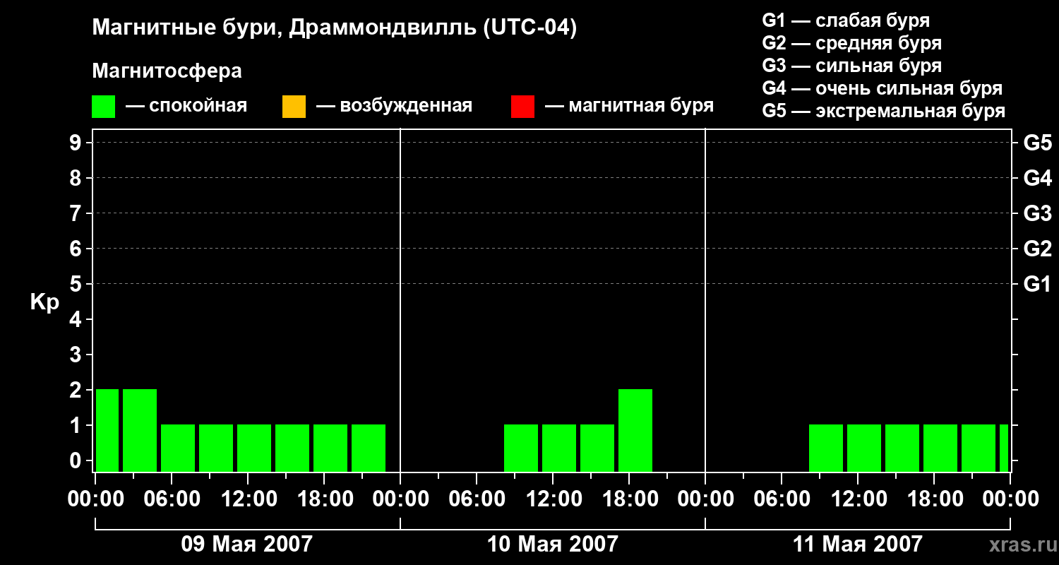 Магнитные бури в Драммондвилле 11 мая 2007 года