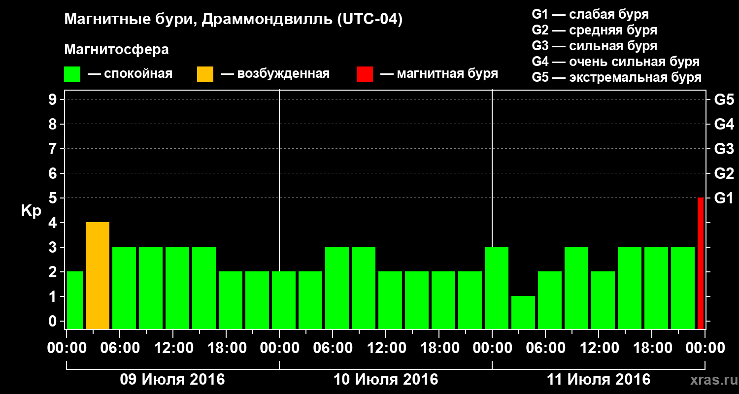 Магнитные бури в Драммондвилле 11 июля 2016 года