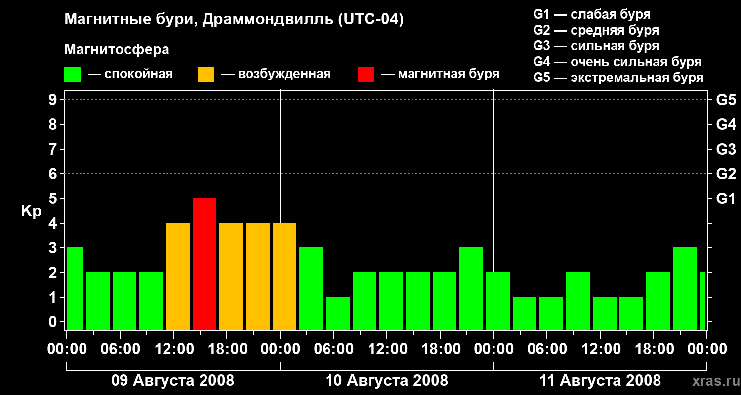 Магнитные бури в Драммондвилле 11 августа 2008 года