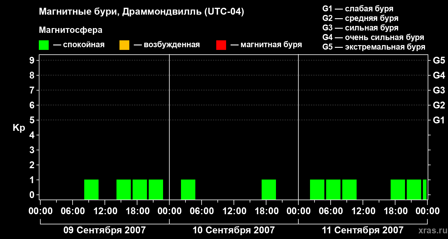 Магнитные бури в Драммондвилле 11 сентября 2007 года