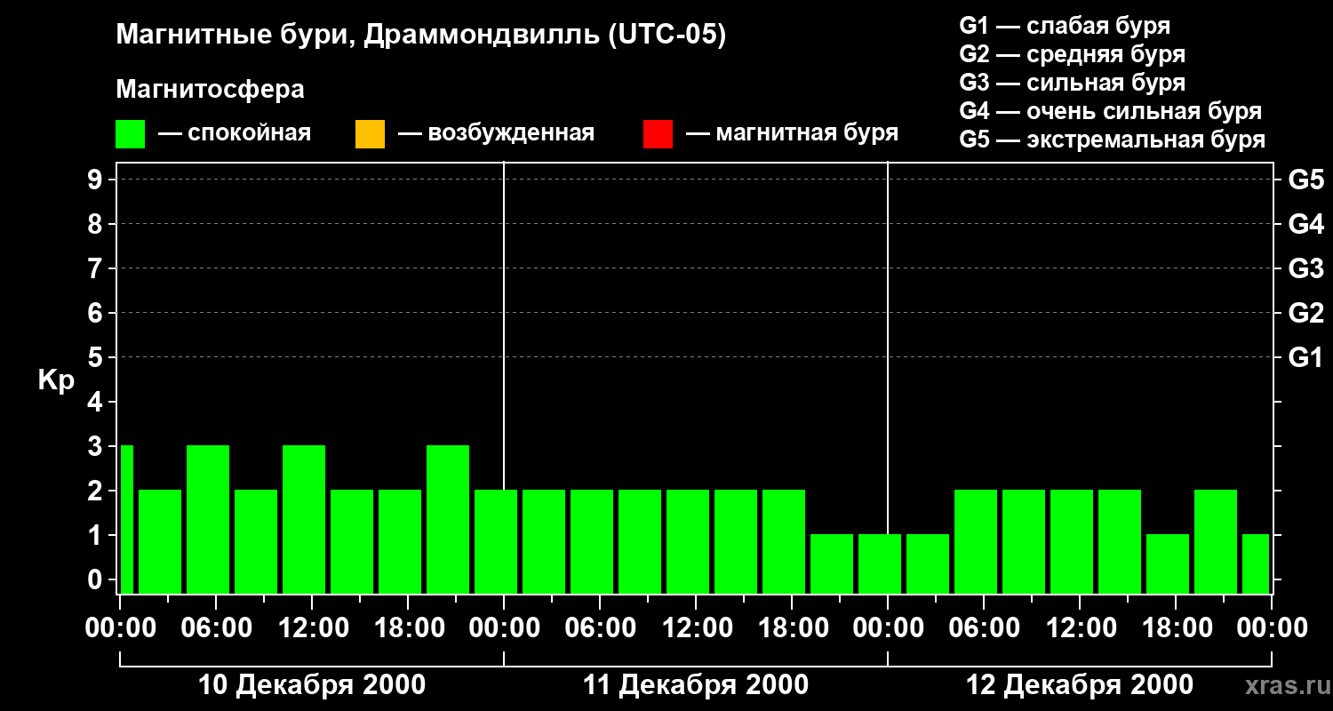Изменения геомагнитного индекса Kp с 10 по 12 декабря 2000 года для средних широт