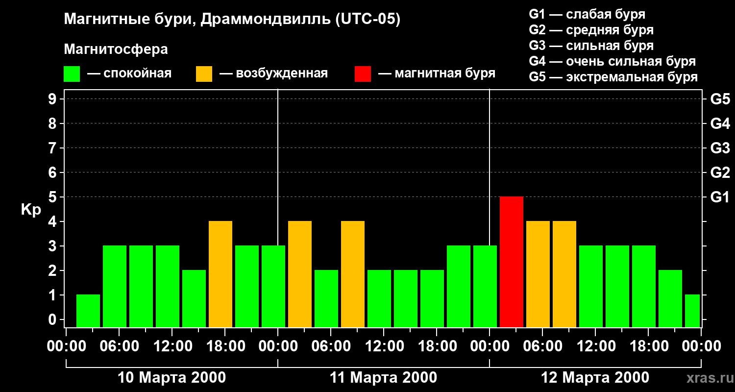 Магнитные бури в Драммондвилле 12 марта 2000 года