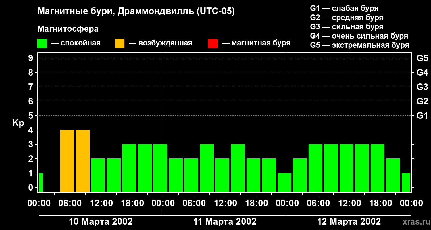 Магнитные бури в Драммондвилле 12 марта 2002 года