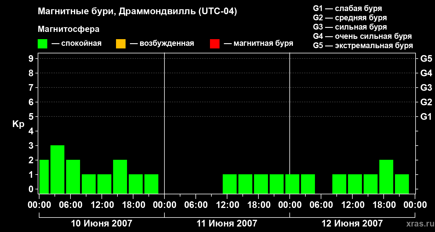 Магнитные бури в Драммондвилле 12 июня 2007 года