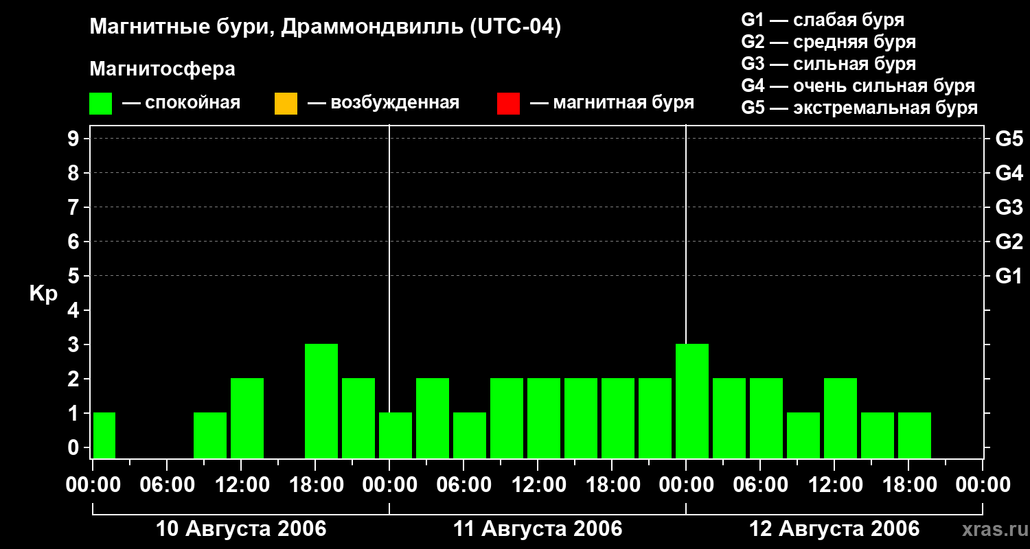 Магнитные бури в Драммондвилле 12 августа 2006 года