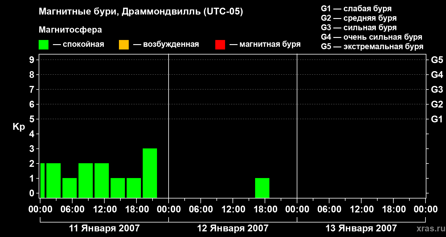 Магнитные бури в Драммондвилле 13 января 2007 года