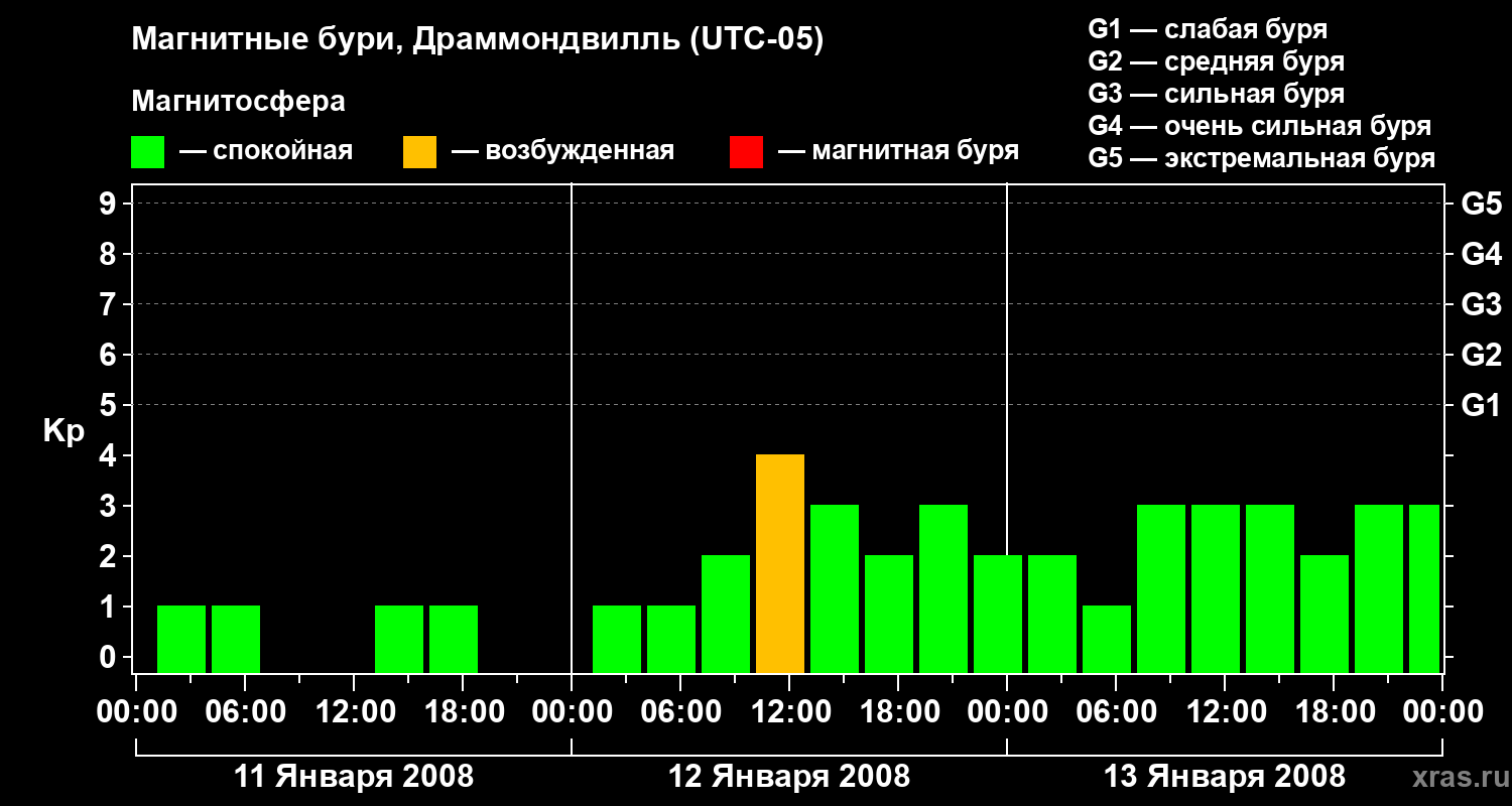 Магнитные бури в Драммондвилле 13 января 2008 года