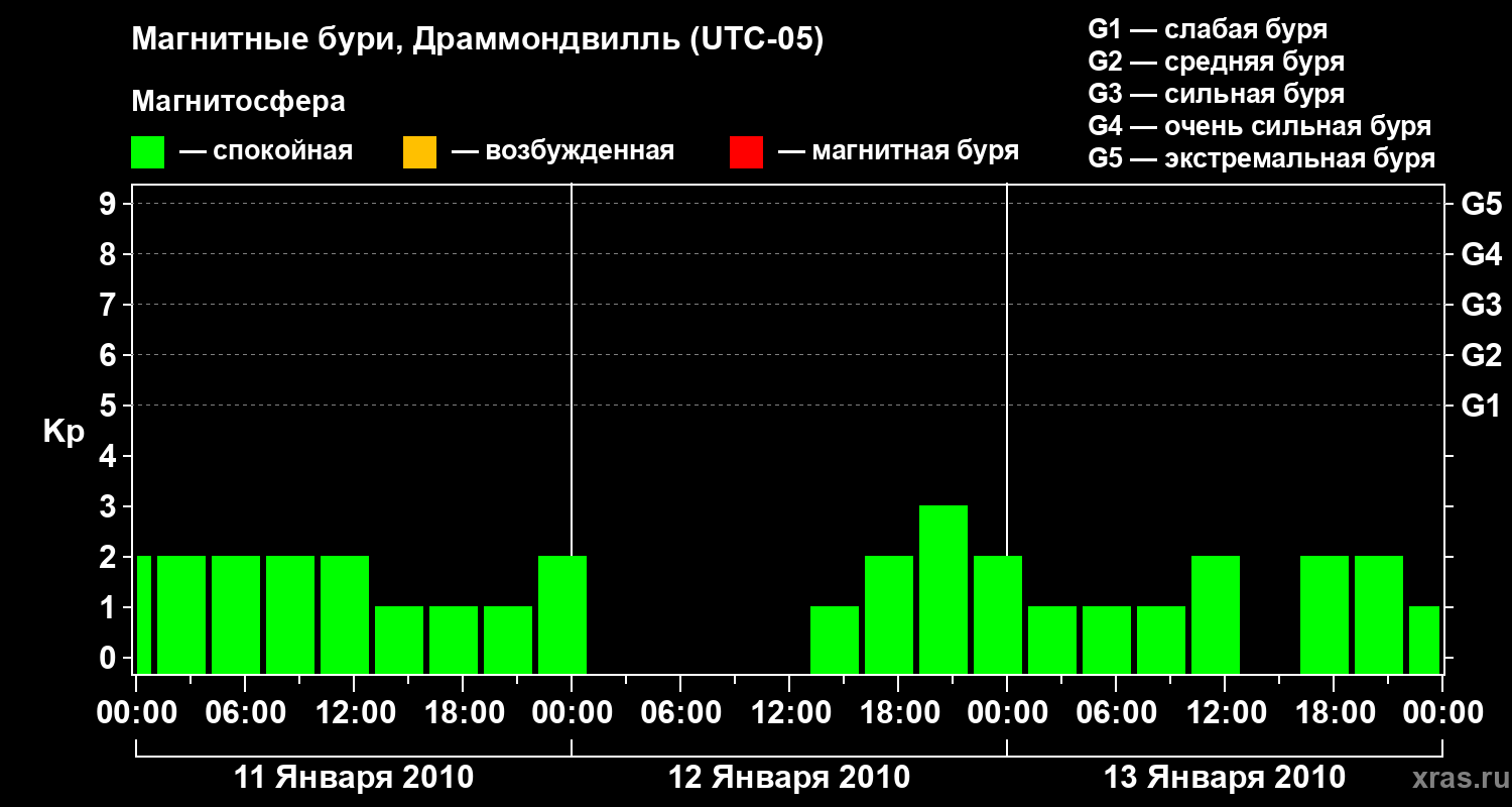 Магнитные бури в Драммондвилле 13 января 2010 года