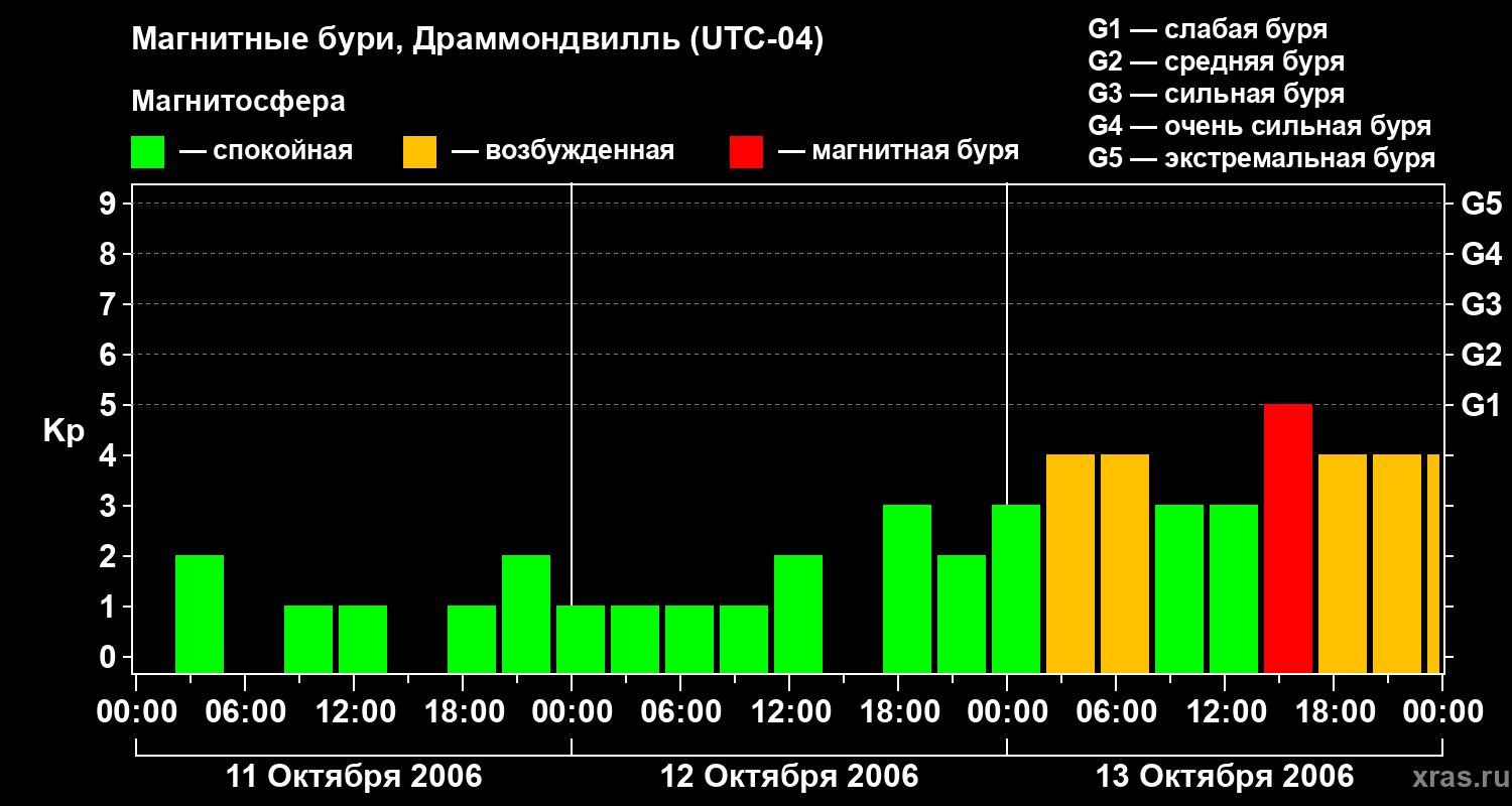 Магнитные бури в Драммондвилле 13 октября 2006 года