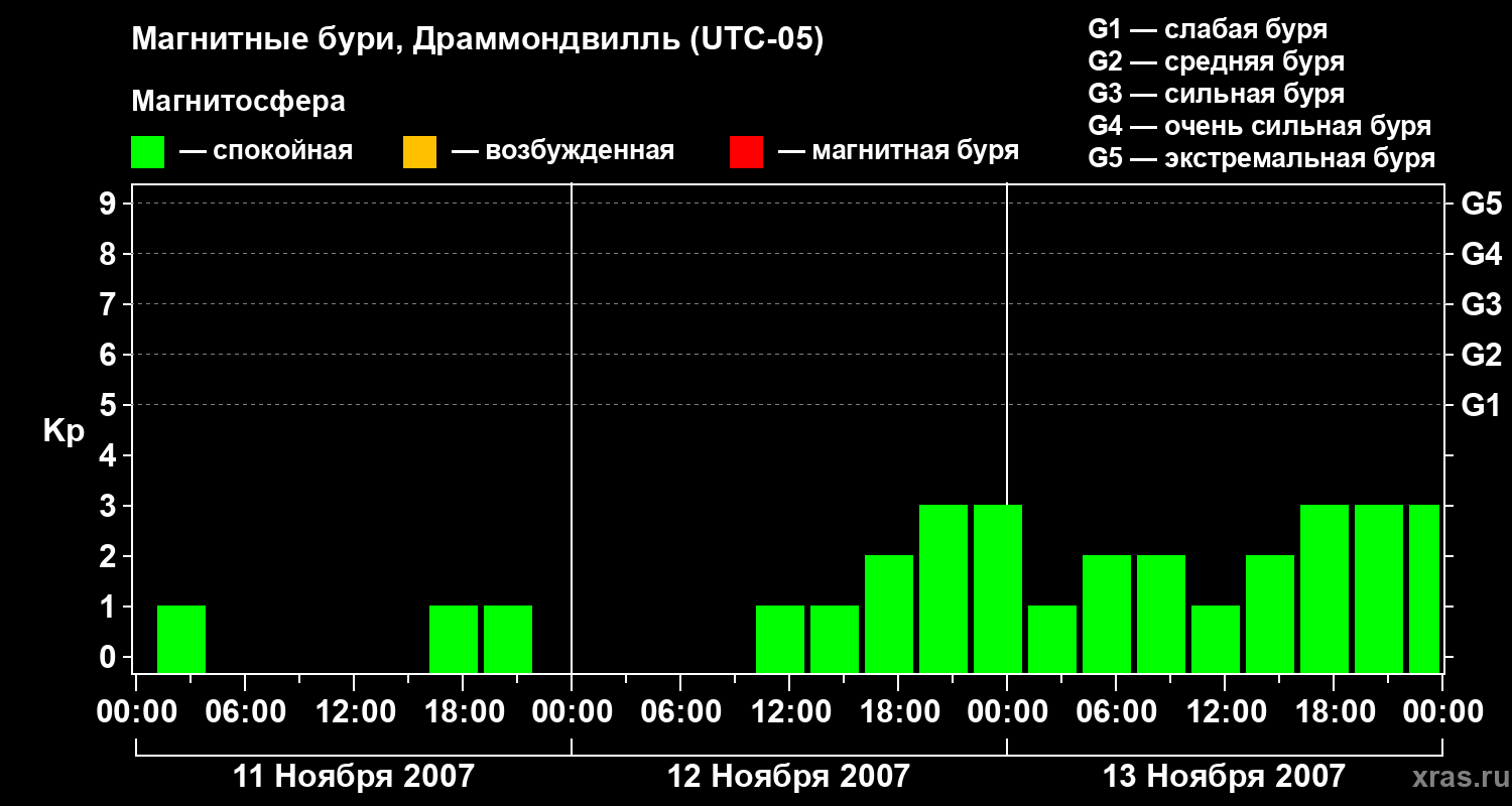 Магнитные бури в Драммондвилле 13 ноября 2007 года