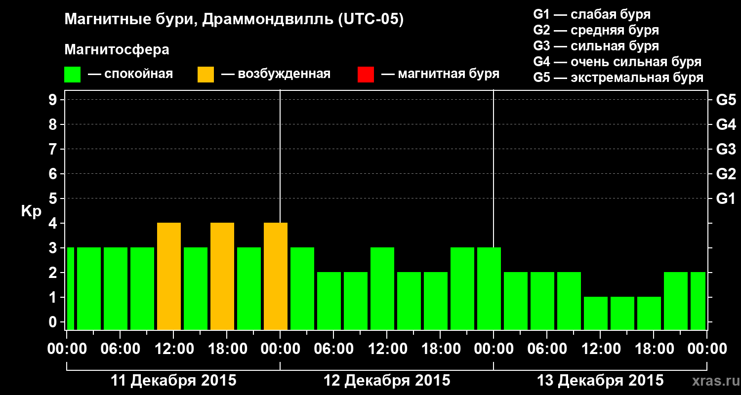 Магнитные бури в Драммондвилле 13 декабря 2015 года