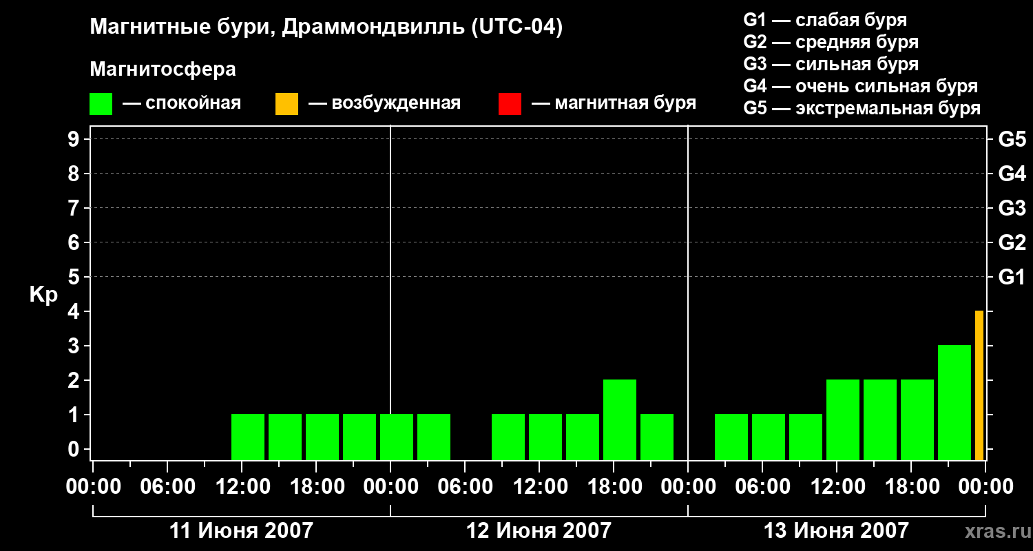 Магнитные бури в Драммондвилле 13 июня 2007 года