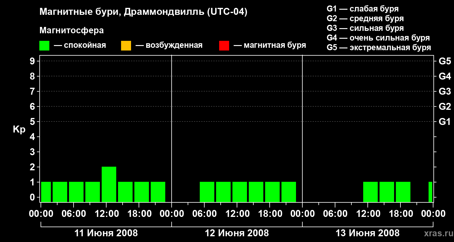 Магнитные бури в Драммондвилле 13 июня 2008 года